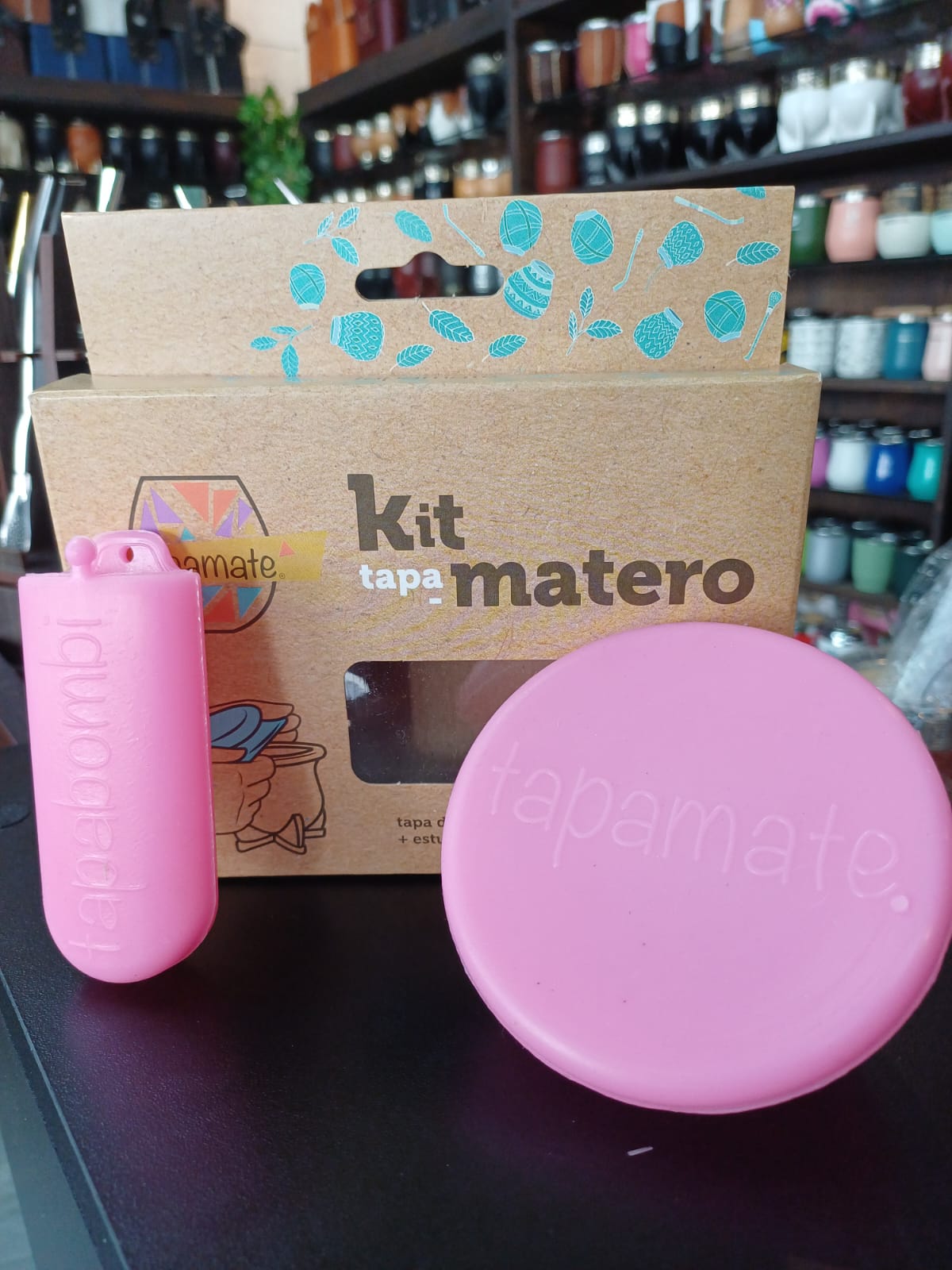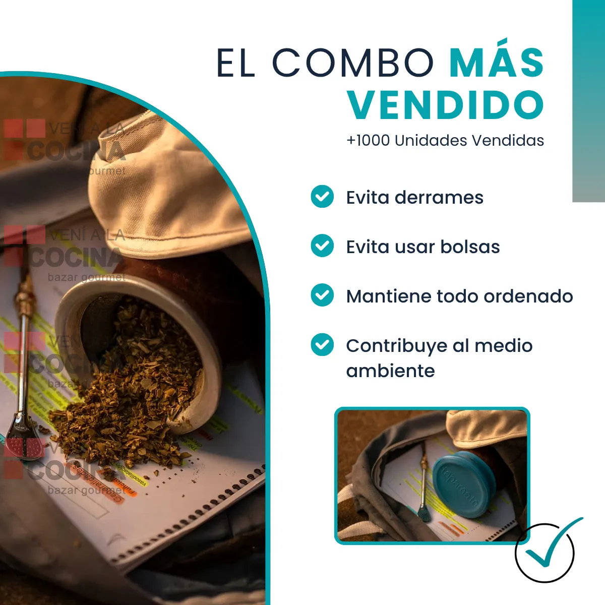 Kit tapa mate y tapa bombilla. Mantiene la limpieza en bolso y canasta, previene derrames del mate y suciedad de bombilla en el guardado. Consultar colores en stock