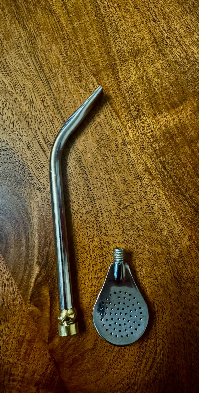 Bombilla curva de acero inoxidable con pala desarmable 18.5×7 pala 3cm.