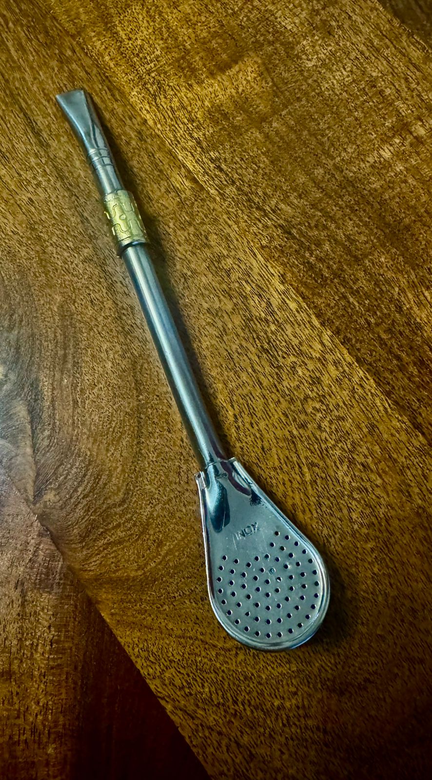 Bombilla Semi curva de acero inoxidable con anillo 18×7. Con pala de 3cm.