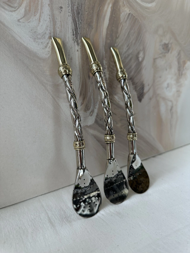 Bombillón Semicurvo de alpaca y bronce trenzado doble anillo.
