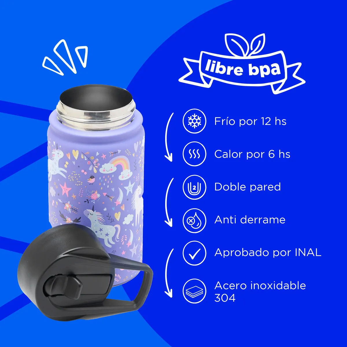 Diseñada especialmente para niños, esta botella combina materiales de grado alimenticio, tecnología de doble capa aislante y un diseño práctico que los acompaña en todas sus aventuras.