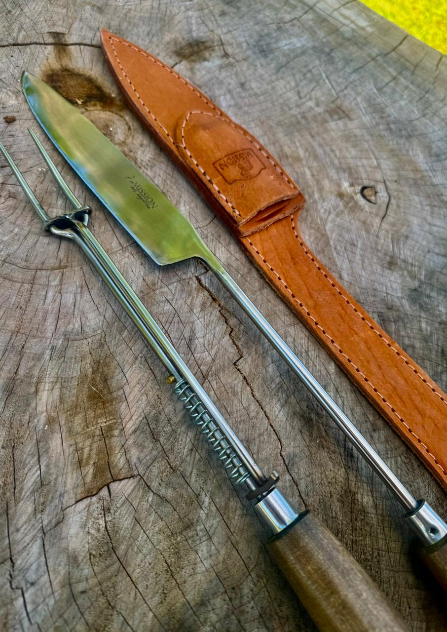Juego Parrillero La Misión, Cuchillo largo y pinche en acero alemán