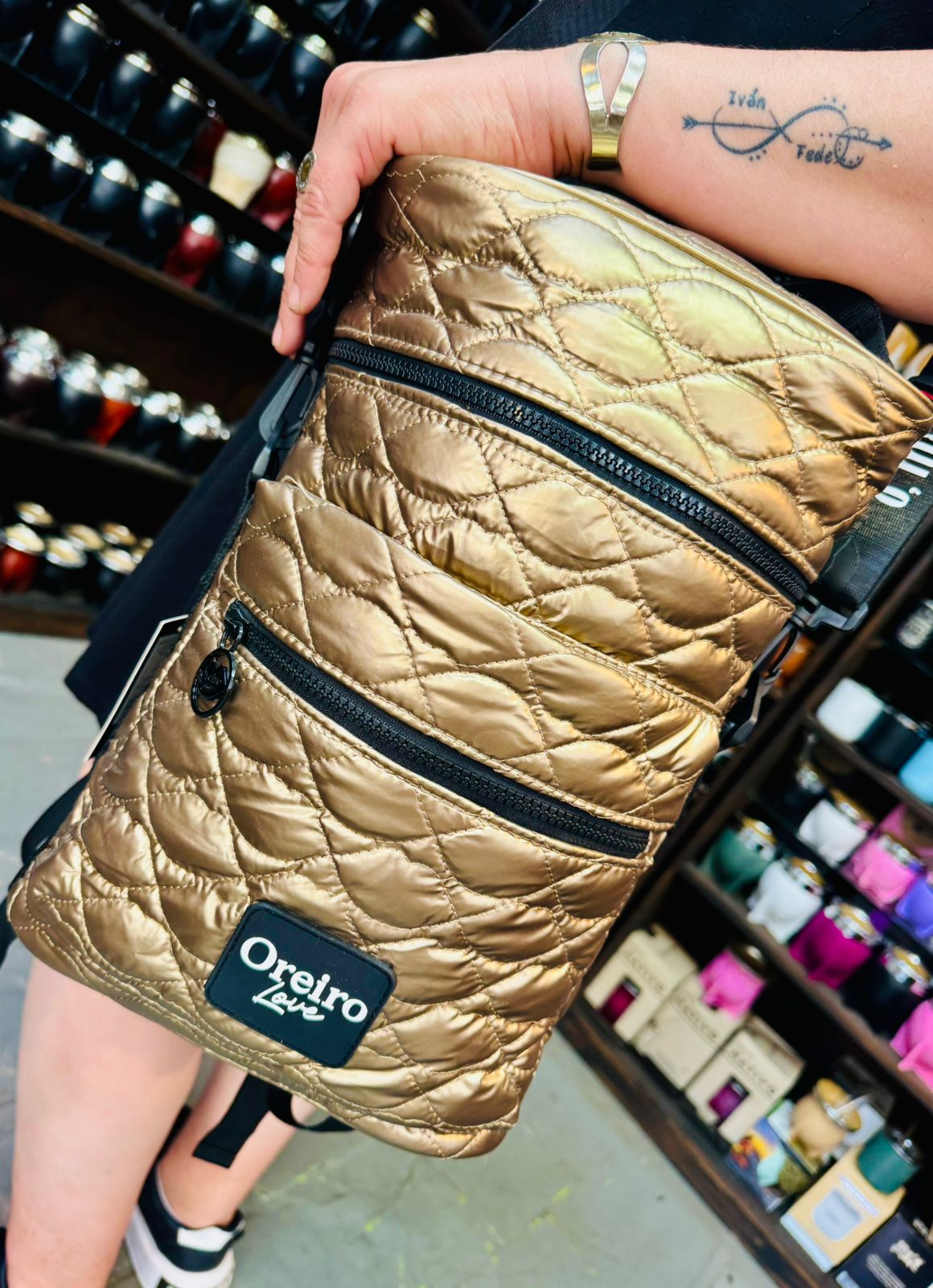 Matera Oreiro dorada, se hace mochila y morral. Con estilo, practica, moderna e impermeable. Consultar en stock y colores.