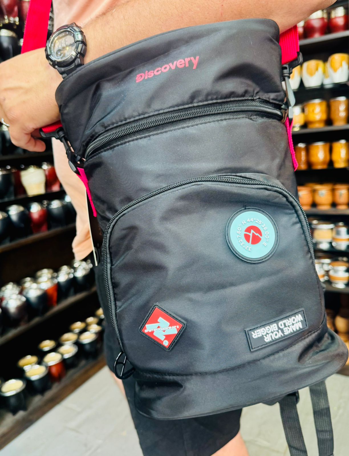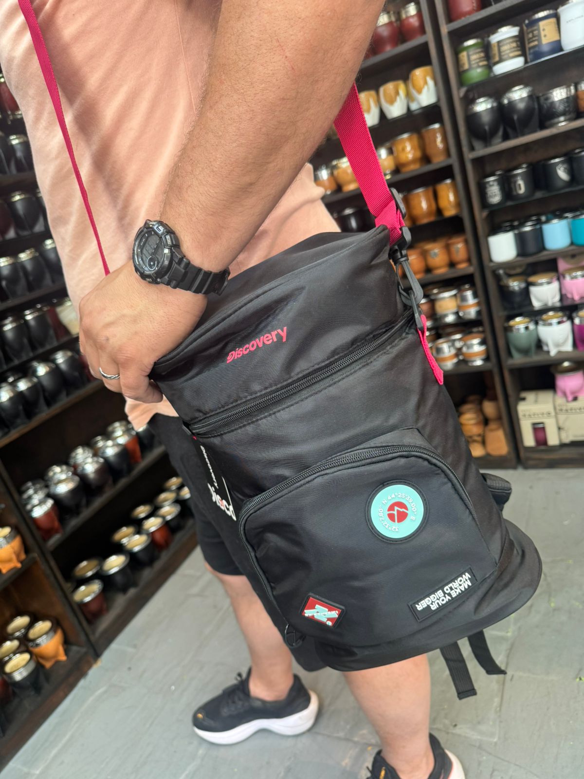 Lleva tu estilo a todas partes con el bolso matero de Discovery, modelo 18465. Este versátil bolso no solo te permite transportar tu mate y termo de 1,5 L de forma segura y cómoda, sino que también destaca por su diseño elegante y funcional. Con un práctico bolsillo frontal, tendrás fácil acceso a tus accesorios. Fabricado en poliéster, es lavable, lo que garantiza su durabilidad y fácil mantenimiento. Su capacidad de 10 L es ideal para llevar todo lo necesario para disfrutar de un buen mate. Además, cuenta con tiras de tela mesh y una correa desmontable, brindando comodidad y adaptabilidad en cada uso. Aunque no es impermeable ni tiene aislamiento térmico, su diseño liso y moderno lo convierte en el complemento perfecto para cualquier ocasión. ¡Haz de cada salida una experiencia única con el bolso matero Discovery!