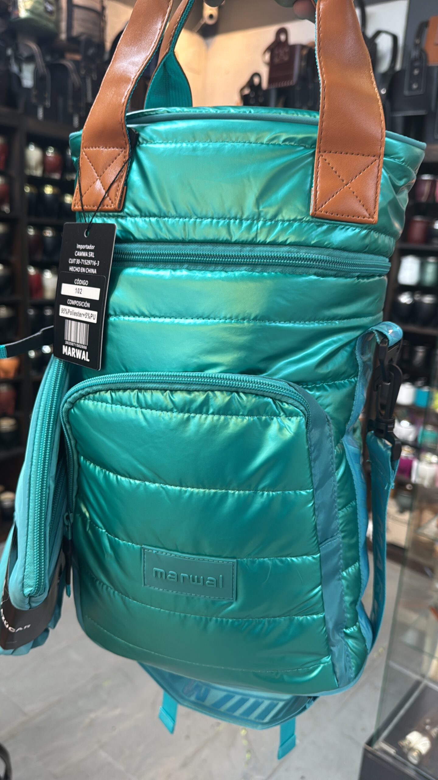 Mochila Morral Matera Verde metalizada Marwal con juego yerbero azucarero