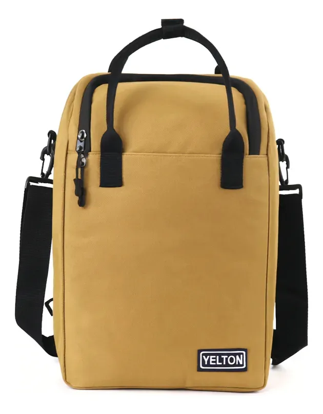 Mochila Morral Matera Yelton mostaza, doble termo. Posee ubicación hasta dos termos grandes o uso de cualquier otro recipiente, reforzada, cómoda y con gran capacidad de carga, impermeable. Consultar stock y colores.