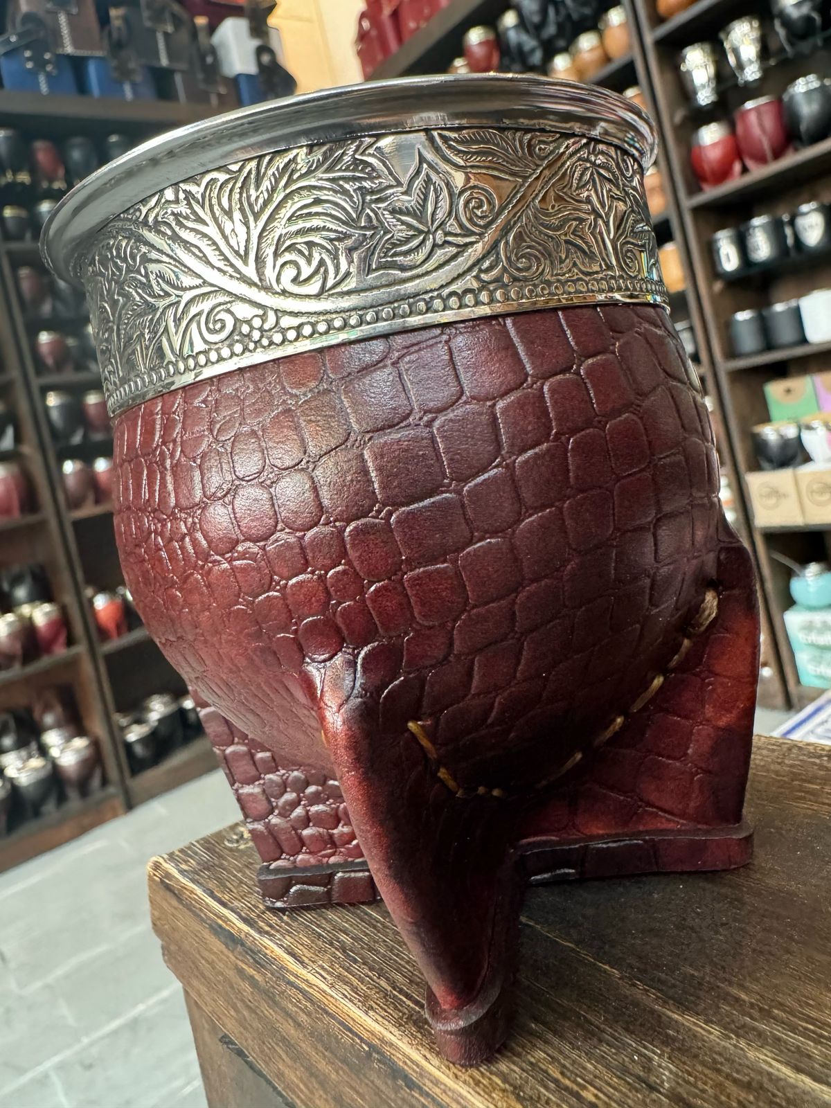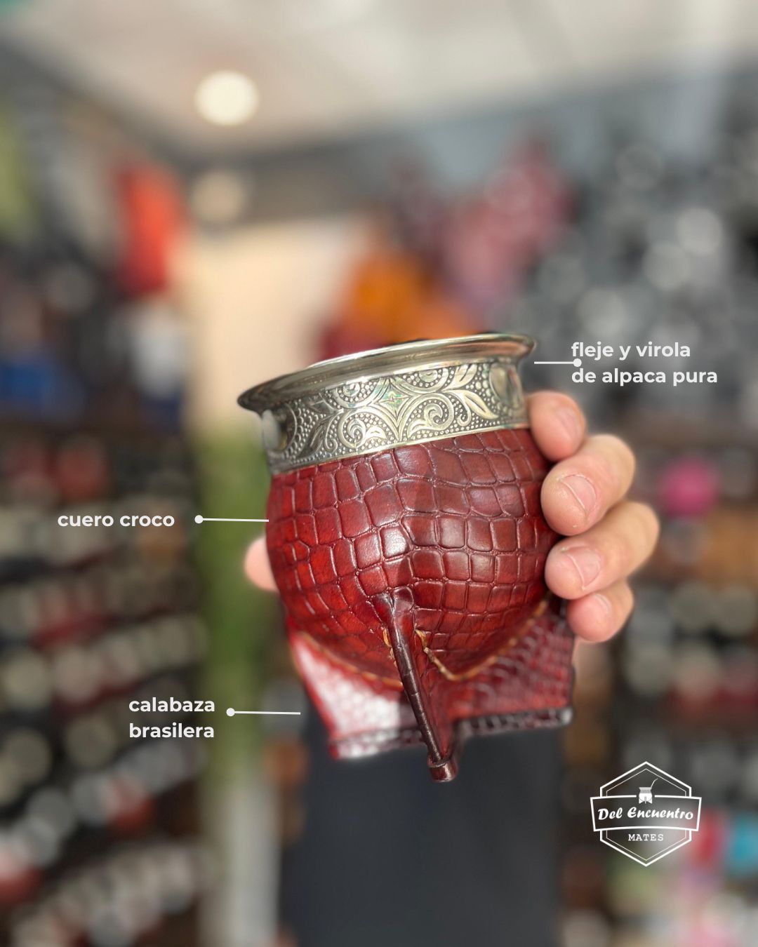 Imperial Premium de calabaza, cuero crocco borravino, Virola y fleje de alpaca labrada. Cuenta con calabaza brasilera. Consultar dibujos de flejes disponibles antes de comprar.