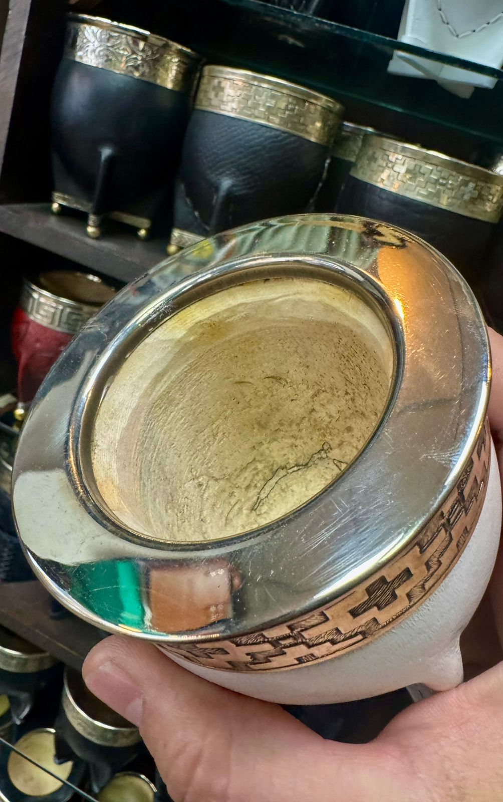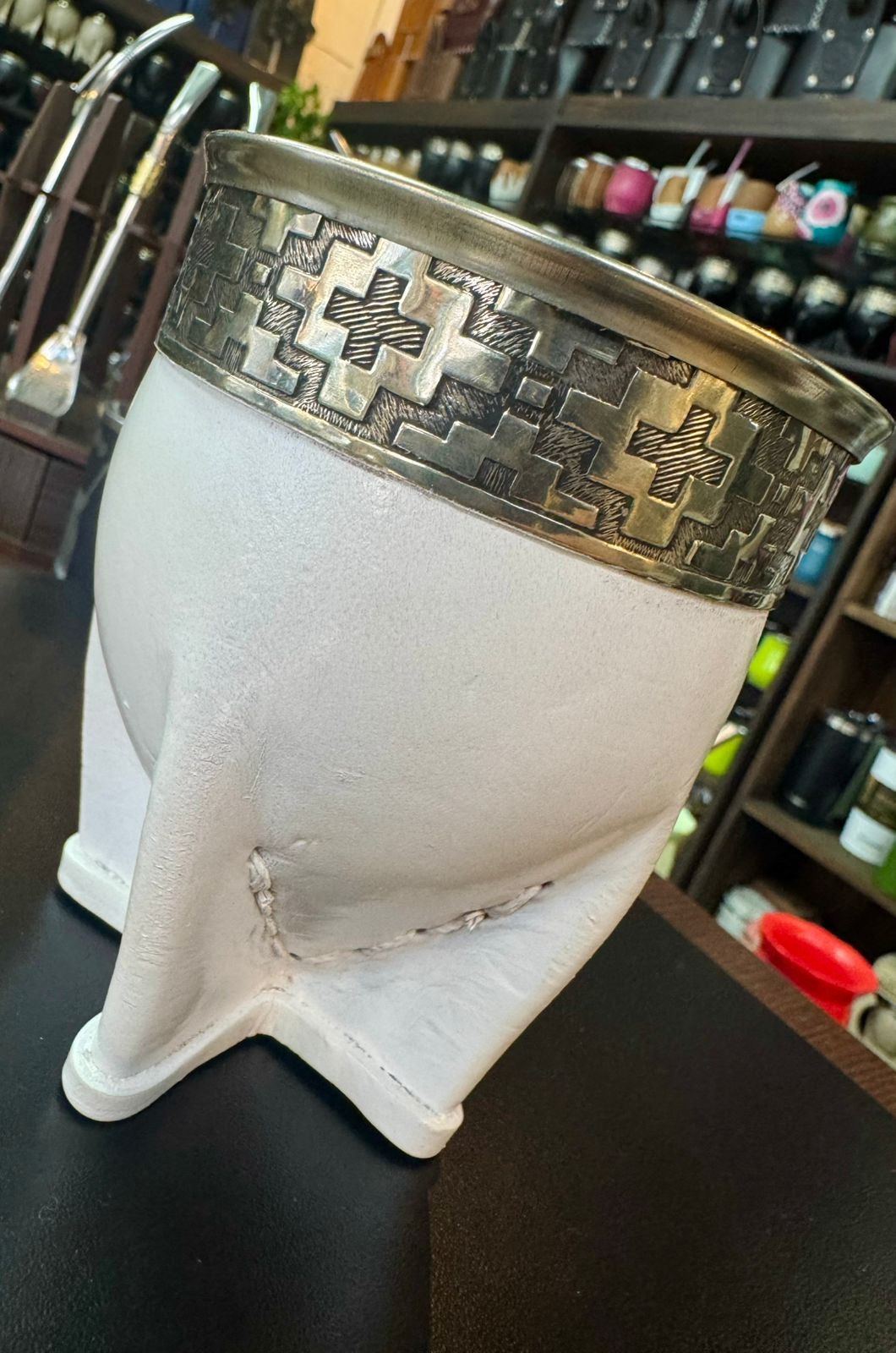 Imperial premium de calabaza, doble cuero blanco, con fleje y virola de alpaca lisa.