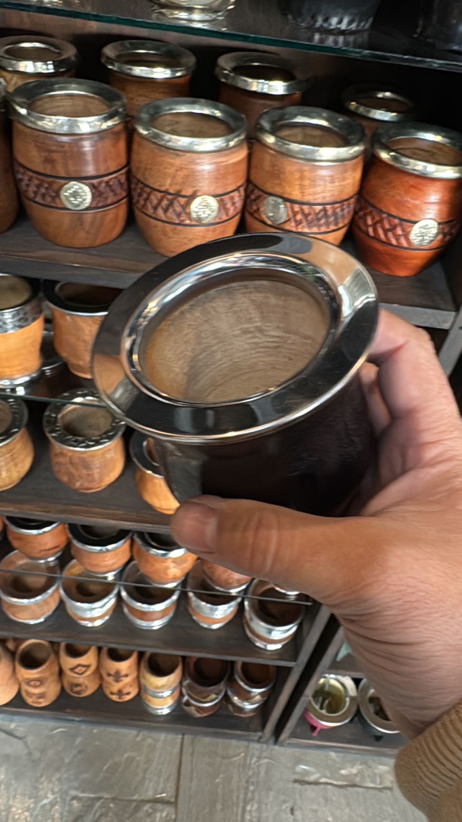 Mate Camionero de algarrobo color negro, con virola de acero.