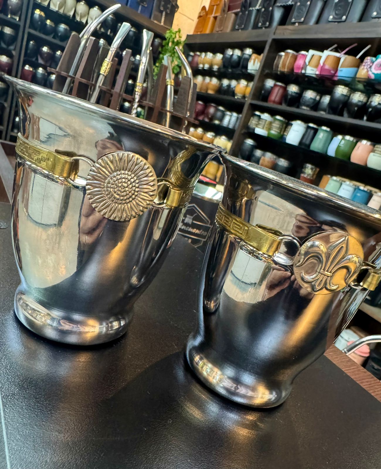 Mate de Acero térmico enterizo con fleje de bronce y dije de alpaca, un trabajo hecho sin costuras, donde el acero es toda una sola pieza. Térmico, cómodo y elegante.