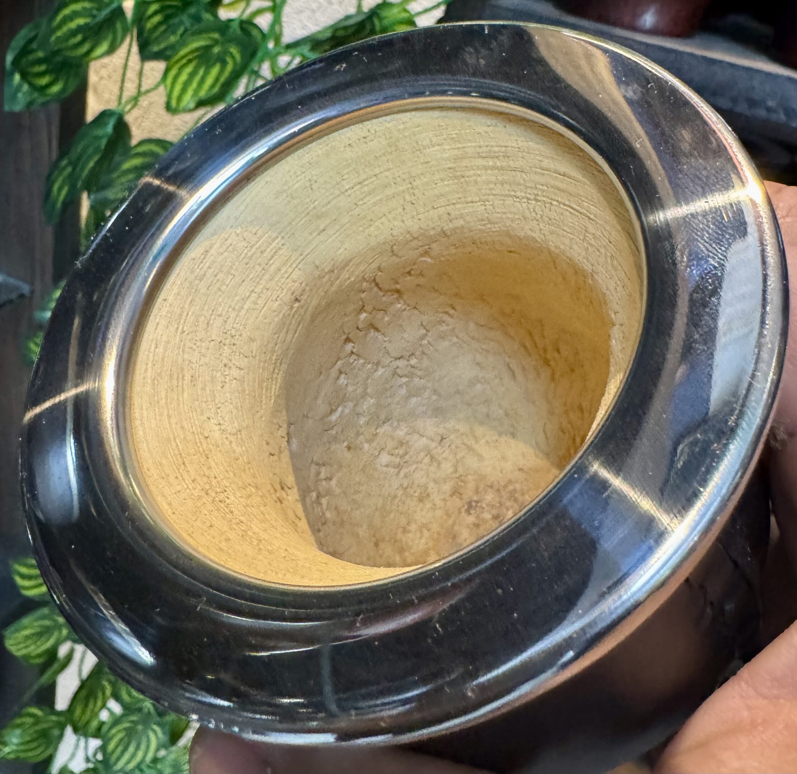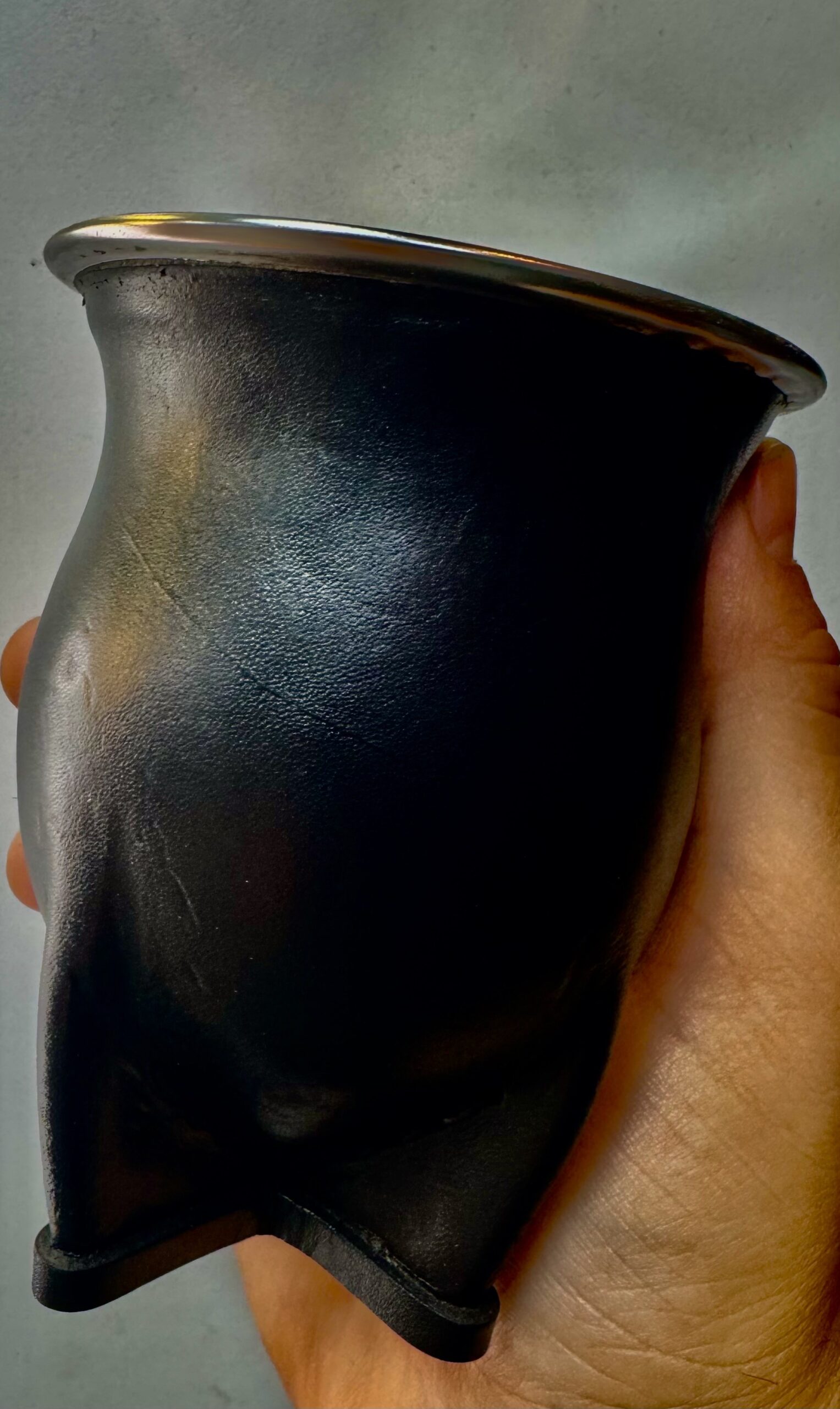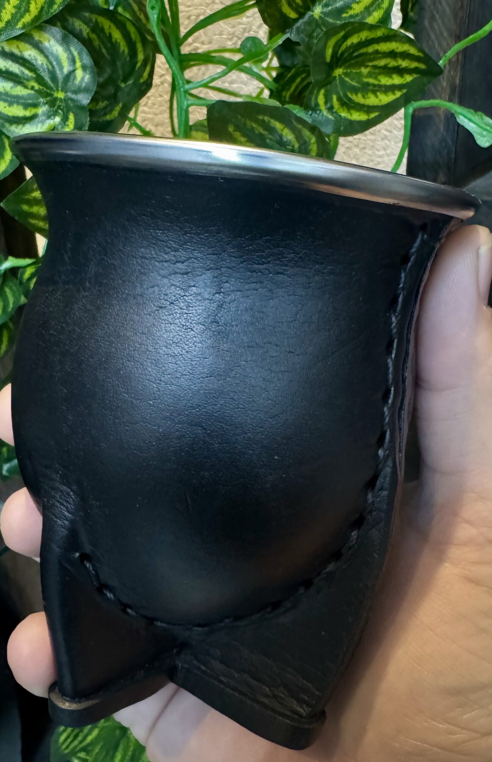 Mate Modelo Camionero de calabaza con virola de acero doble cuero color negro.