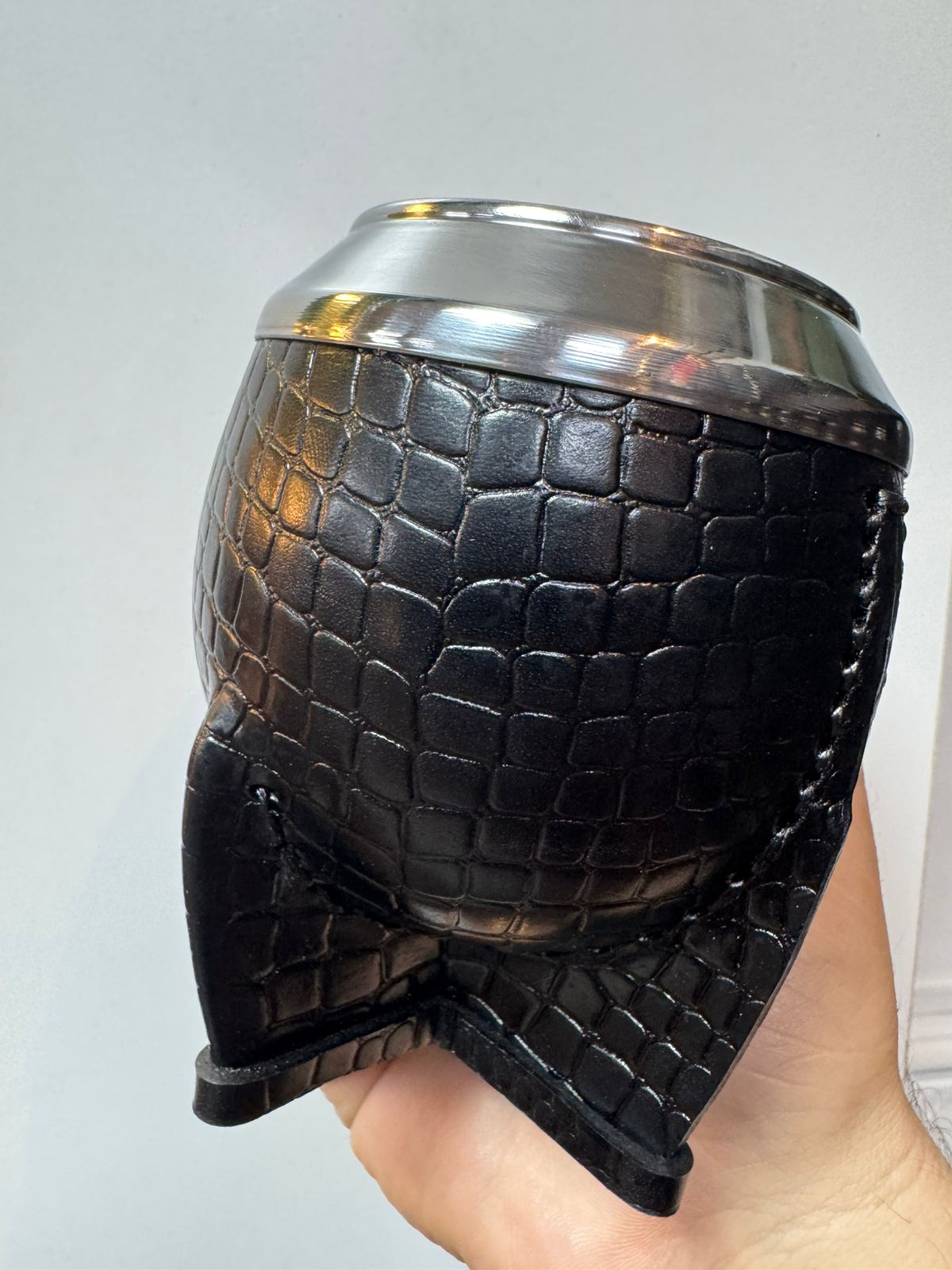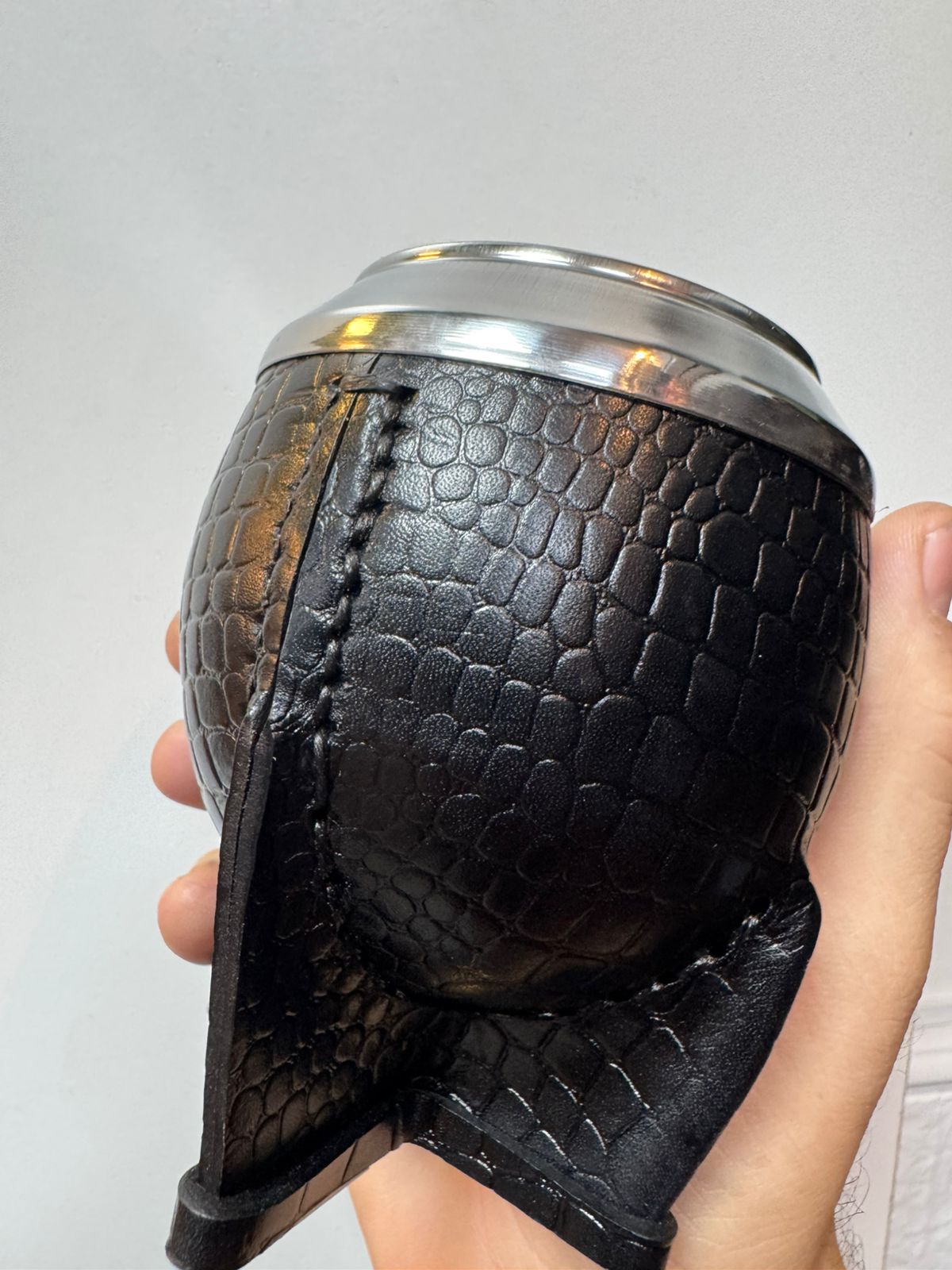 Mate Torpedo Premium calabaza cuero croco negro Costura uruguaya, virola de acero.