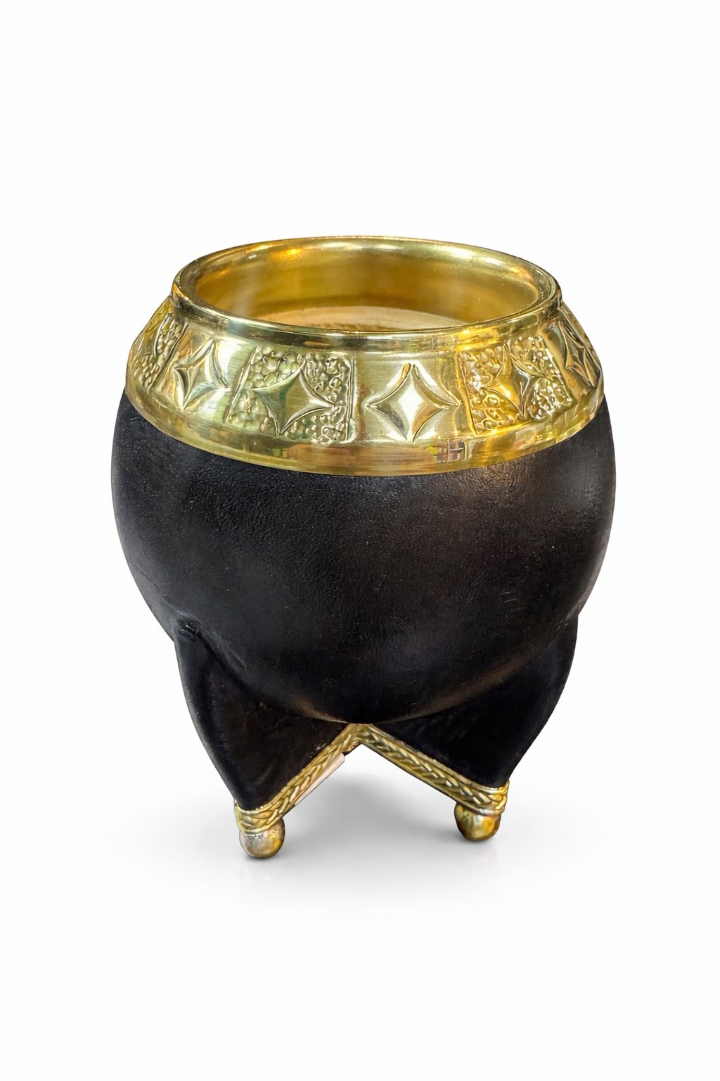 Torpedo Premium Virola Bronce Cincelado, con base completa y esferas en bronce. Mate de Calabaza, con doble cuero y costura reforzada, con plataforma toda en bronce.