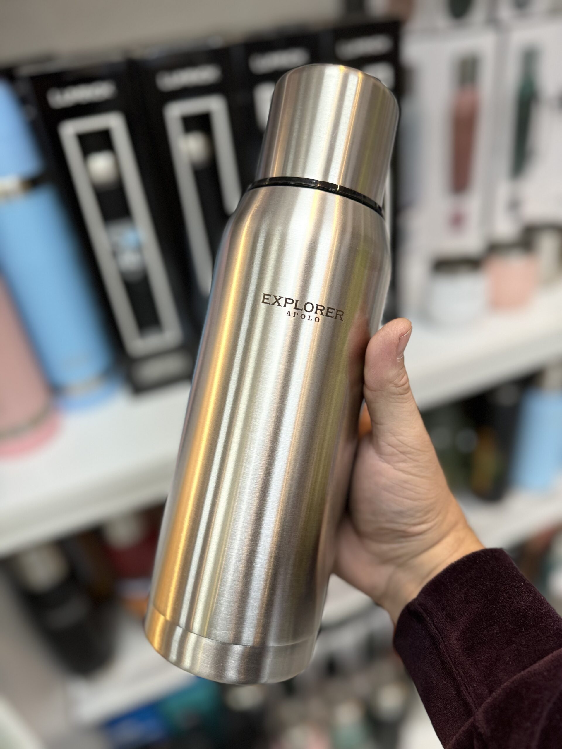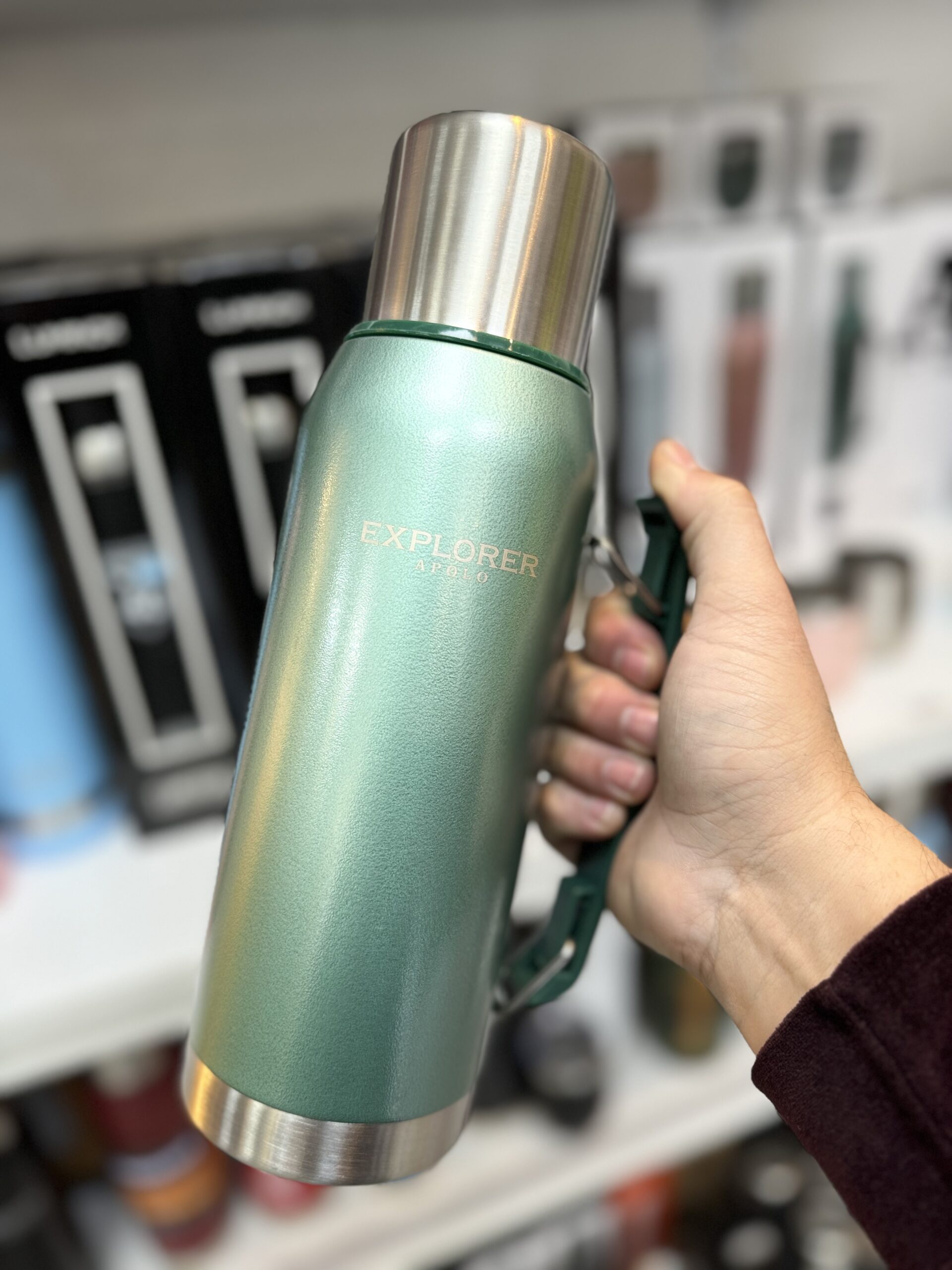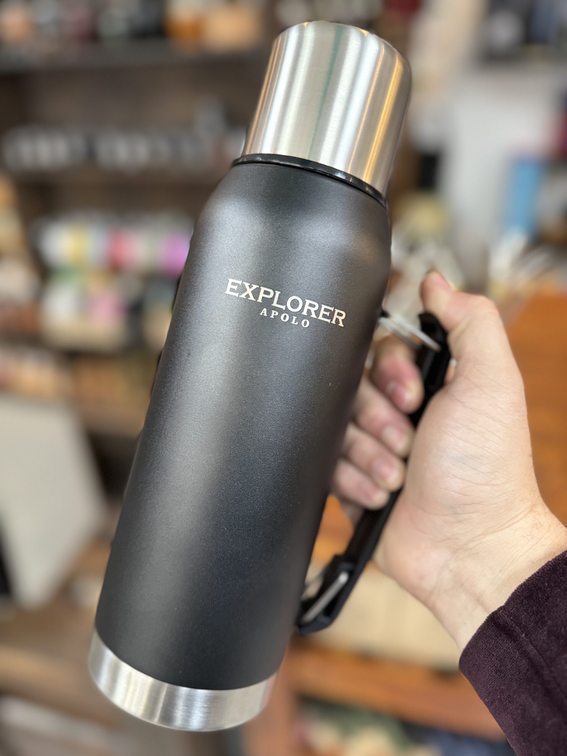 TERMO EXPLORER ACERO INOXIDABLE 1 LITRO CON TAPÓN CEBADOR IDEAL PARA MATE. CONSERVA 24 HS. FRÍO Y CALOR