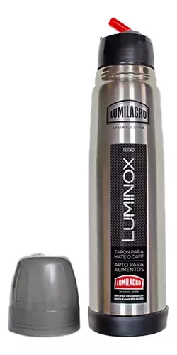 Termo Luminox doble capa, color acero, mantiene la temperatura caliente por muchas horas debido a la calidad de sus materiales y con su pico matero, el cual le da mayor facilidad en su uso cotidiano.