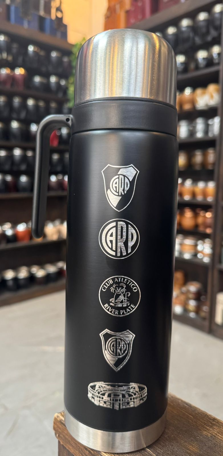 Termo Media manija Personalizado River Plate 1L. Termo genérico con pico matero.
